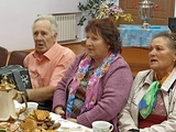 В уютном зале, в непринужденной обстановке напоминающей кафе, под музыку 70 х, за одним столом собрались люди старшего поколения: соседи, знакомые, старые друзья и незаменимые участники художественной самодеятельности ДК. За повседневными хлопотами не всегда получается вот так душевно пообщаться.